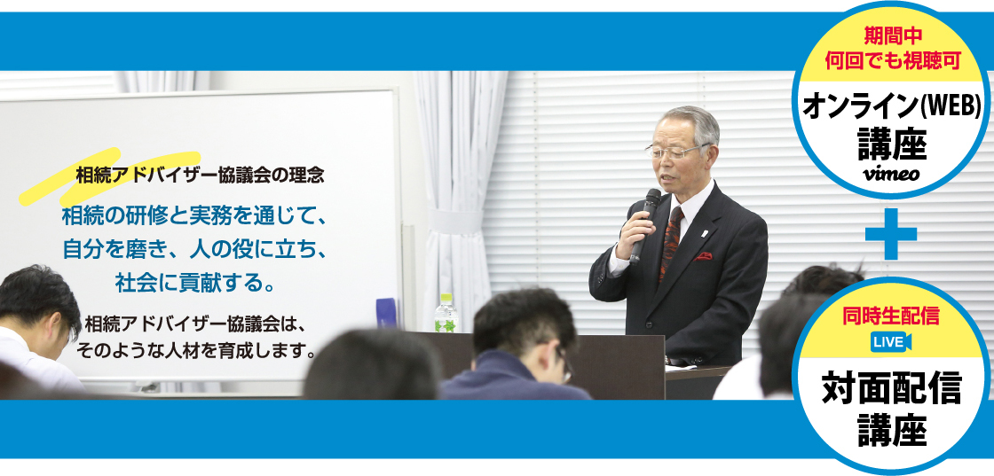 | 内容 | 相続は様々分野の知識を必要とします。本養成講座は相続に関連する各分野を横断的に受講できることを特長としていますが、法律・税法・不動産・金融等が時系列的に絡みあうため、漫然と聴講していると各講座において“迷子”になってしまいます。 本講座では相続業務の全体像を俯瞰し、各講座の位置づけや基本的用語の確認などを行います。続く18講座を乗り切るための羅針盤となる講座です。
