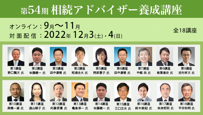 第18講座/相続総括編/15:10〜17:20 事例からみる相続アドバイザーの実務 |